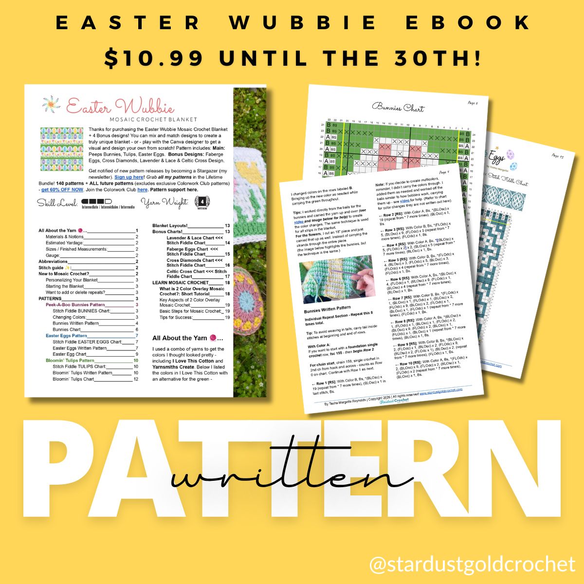 π° Full written patterns for Peek-A-Boo Bunnies, Easter Eggs, & Bloomin' Tulips Wubbie sized blanket