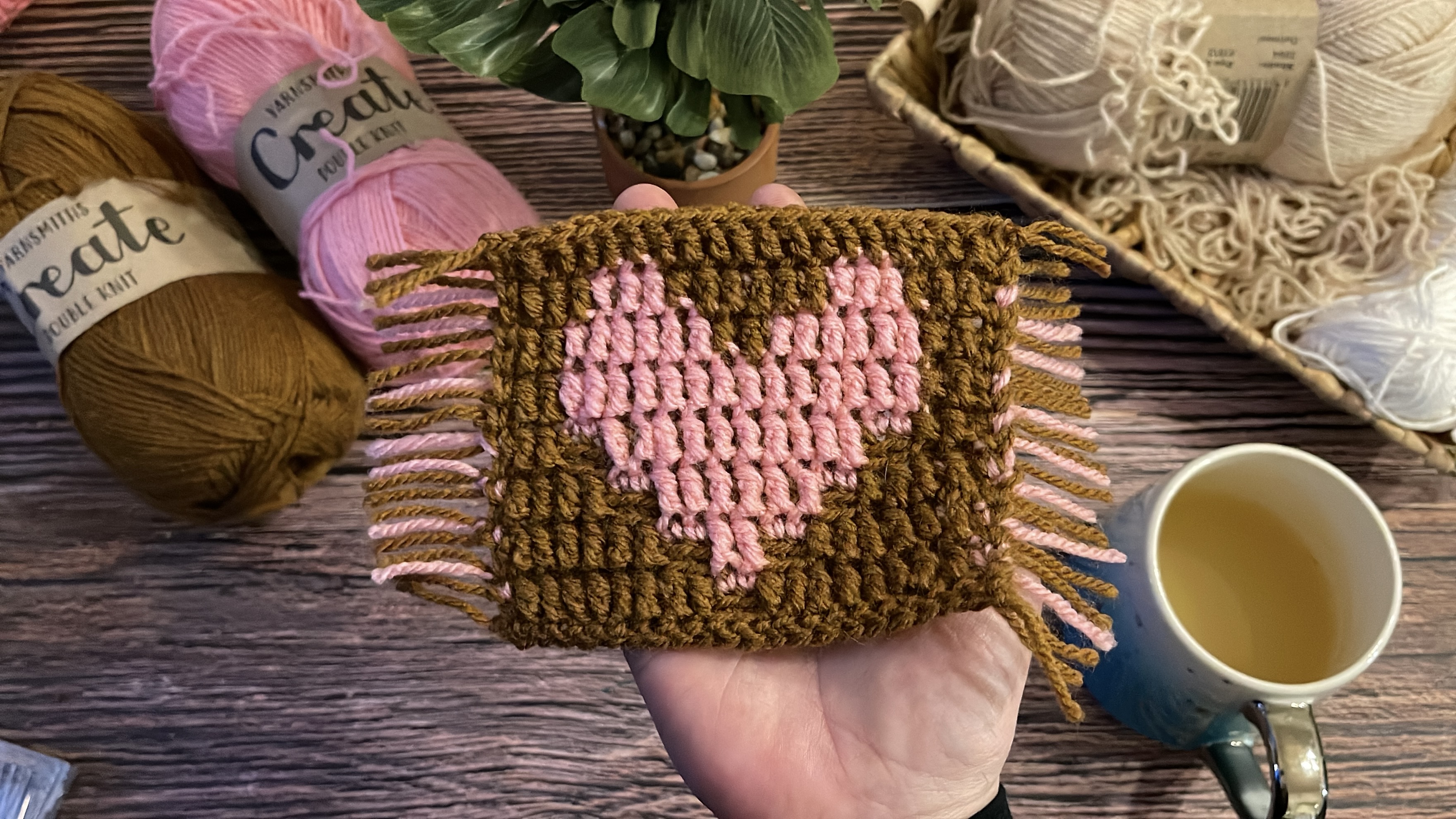 Mosaic Crochet Heart Mug Rug